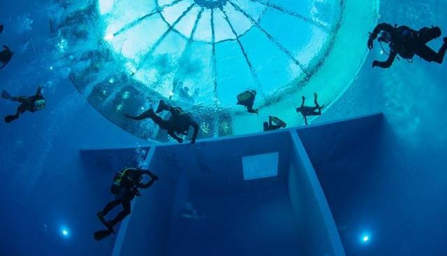 La piscine elle-même est composée de deux plateformes, la première à 1,3 m et la seconde à 2,5 m de profondeur. Les trois fosses contiguës ont une profondeur de 5, 10 et 33 mètres, cette dernière se trouvant au fond d'un puits dodécagonal. Elle est remplie d'environ 2 500 mètres cubes d'eau de source faiblement chlorée maintenue à une température de 33 degrés. Trois cloches ou grottes de plongée sont accessibles par le niveau de 10 mètres de profondeur. Plusieurs fenêtres-hublots permettent une vision dans les deux sens vers le bar-restaurant et d'autres salles du centre. Le centre a été inauguré en mai 2004 Le centre est accessible pour plongeurs de tous niveaux.